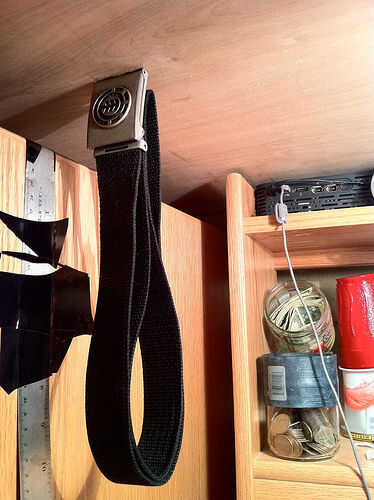 mi amigo en la habitación de al lado me desafió con este proyecto. Necesitaba alguna forma de colgar su mochila. Él deseó originalmente utilizar adhesivo de 3 M ganchos, pero estos no pegan en el interior de su armario. La fuerza de esta configuració