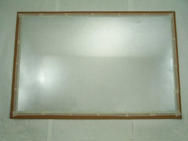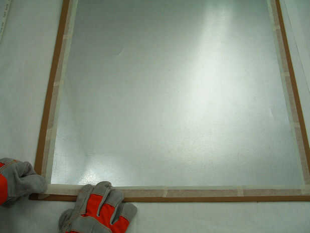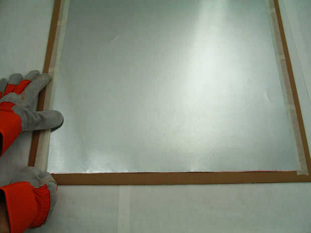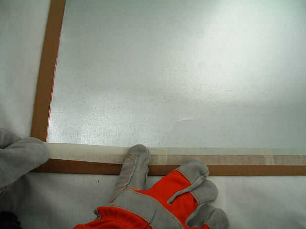 Nota: Si tu lata encaja perfectamente en el marco (24 x 36 pulg. en este caso) se sigue el mismo procedimiento excepto que su cinta se superpondrá alrededor del borde de la base. (Ver imagen).