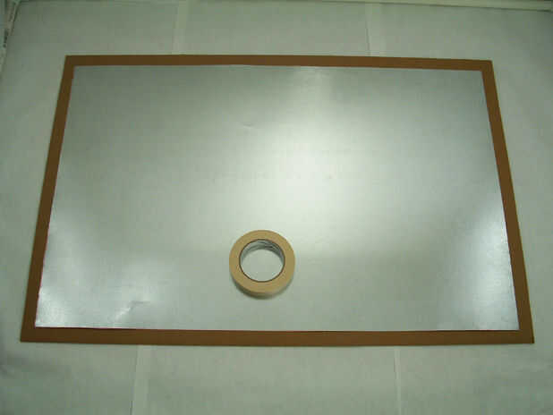 A partir de un lado largo, rip off 6-8" cinta adhesiva y traslape uniformemente sobre el estaño y el respaldo. Continuar por el lado, traslapando cada trozo de cinta a medida que avanza. (Véase el cuadro).