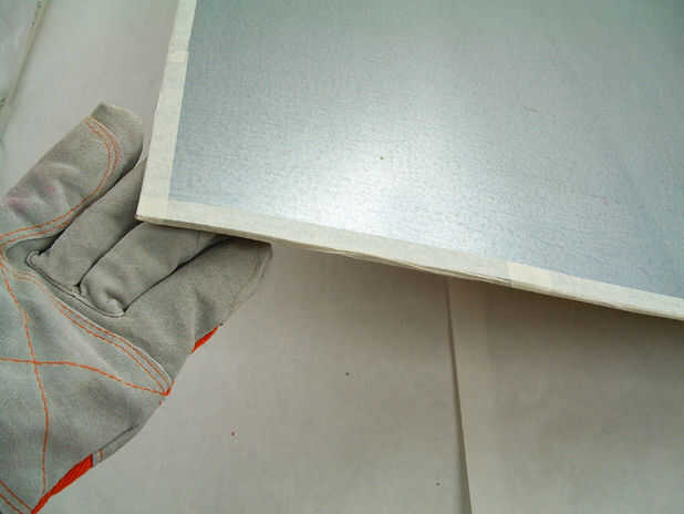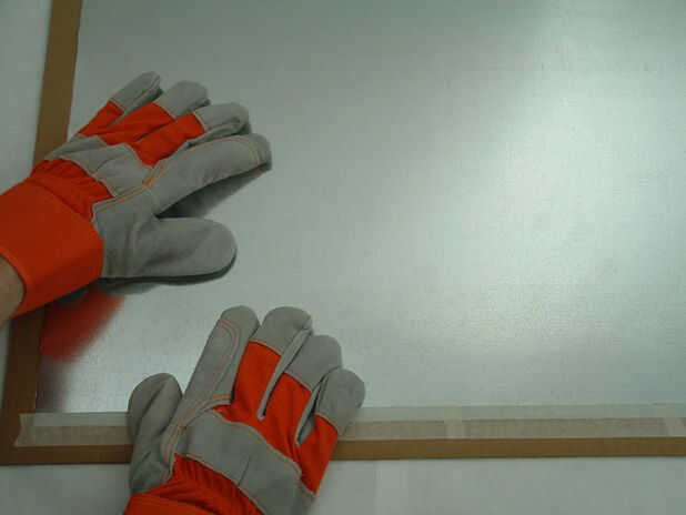 Asegúrese de que la lata no forma cualquier ondas poniendo una ligera presión en la lata y pasar la mano "guante" a través de ella desde el lado que hemos grabados. (Véase el cuadro).