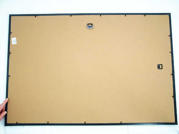 Hagamos que ese cartel ahí vamos. Quitar el parte movible del papel (si hubo) y el frente de acrílico. Si se trata de un nuevo marco, el acrílico puede tener 2 capas de plástico protectora, retirar y colocar acrílico nuevamente dentro de la estructura. Ahora coloque el cartel en el marco. Coloque el respaldo en el marco (Asegúrese de tener el colgador en la posición correcta en relación con el cartel). Doblar las lengüetas hacia abajo para que aplique presión sobre el respaldo.