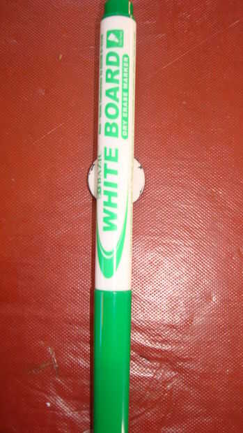 Añadir (un imán con un pegajoso atrás.  ) a la pluma y el palo a la parte delantera cubierta.
