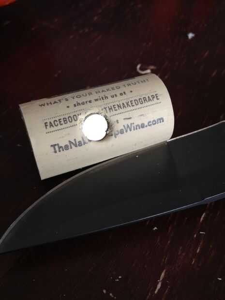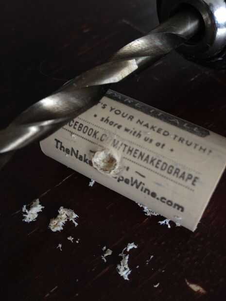También puede notar que el agujero no está centrado en el corcho. Si te preocupas por este tipo de cosas, mida, marque y perfore un orificio piloto para ayudar a encontrar el centro. No importa, por lo que comentar.