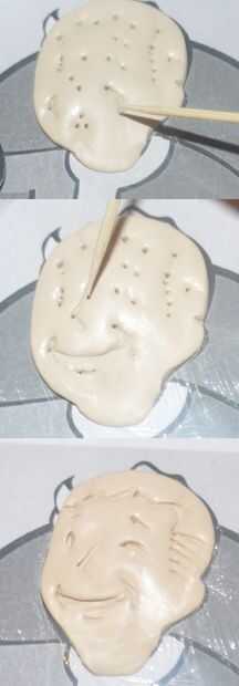 Tome una pequeña cantidad de arcilla beige y la forma como la cara del muchacho de la bóveda.