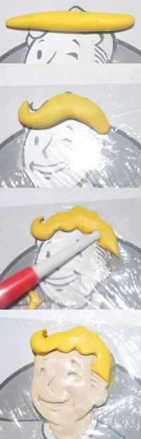 Hacer la forma de un plátano pequeño, ligeramente aplanarlo y usar un bolillo para acentuar cada curva. A continuación, presione ligeramente su pelo en la parte superior de su cabeza.