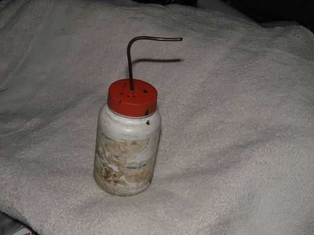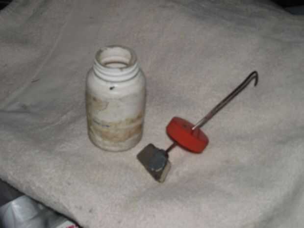Tomar una botella de píldora plástica pequeña, hacer un agujero en la tapa, sujetar el imán en un extremo de una barra de cobre amarillo pequeño y dejar el otro extremo a través del orificio en la tapa. Entonces doble una "L" en la parte superior de la varilla. Ahora puedo escoger las limaduras o cualquier otro acero, dejar que se adhieren a la parte inferior de la botella de píldora. Para expulsar el acero, mantenga el frasco en una mano y tire hacia arriba en la parte superior de la varilla de latón con la otra mano.