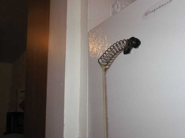 Atar un extremo del hilo para la primavera. En el otro extremo del hilo atar cascabeles, volantes o cualquier tipo de presa aviva su felino. Para la buena medida cubrimos en nip de gato. Una vez Coloque en la nevera y esperan la diversión.