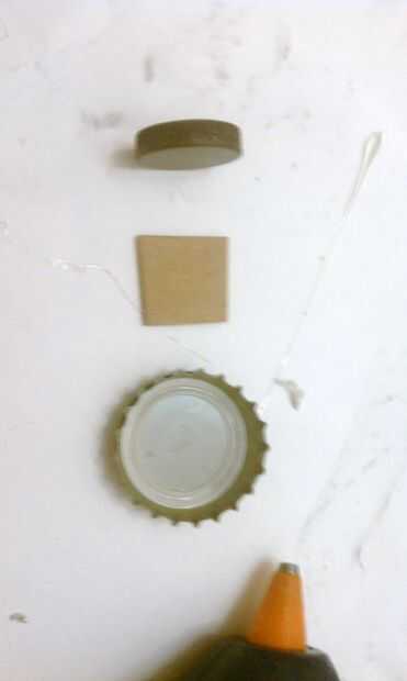Ahora que se reunieron sus materiales, cortar el cartón en trozos que quepan en la tapa. A continuación, pegarlos en su lugar. Después el pegamento, pegamento en el imán y sujete firmemente hasta que el pegamento se seque. Esto debe dejar con el imán un poco más allá el borde de la tapa para que no raye la superficie de la nevera. Repetir tantas como sea necesario para llenar tu nevera con su nueva obra de arte.