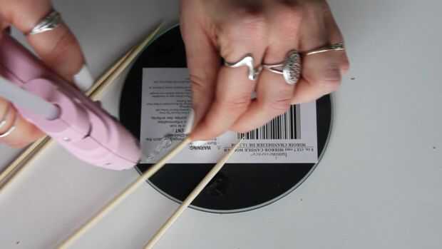Pegamento caliente los palillos en la parte posterior del espejo