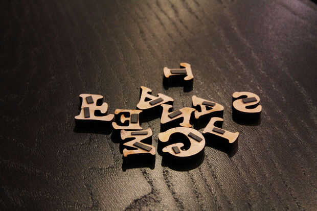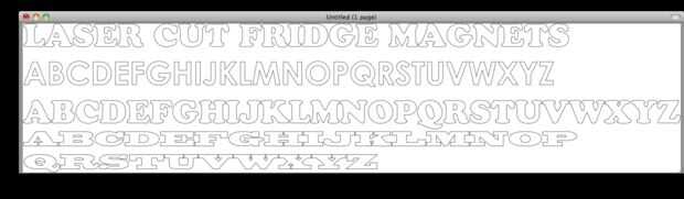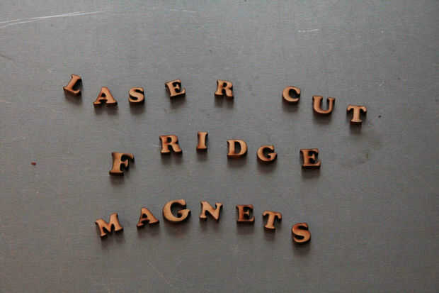 tuve un montón de extra láser cortar letras de mentira alrededor de mi mesa, de otro proyecto.  Corte un poco más y pegado hoja magnética en el reverso de las letras para hacer imanes de nevera.  Yo he conectado el archivo eps abajo.