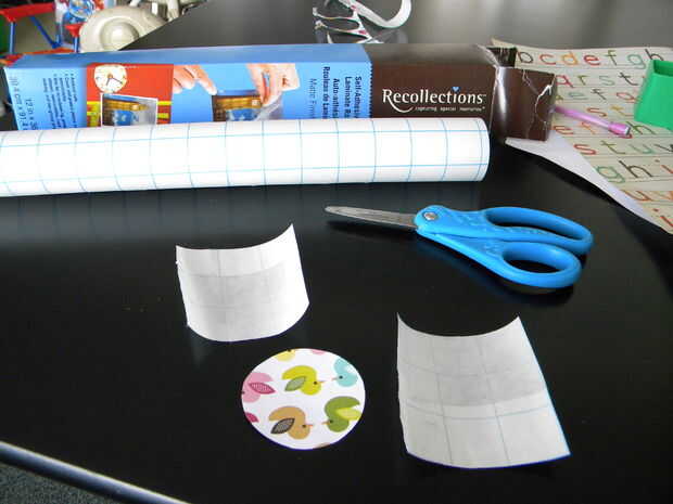 Corte una cantidad apropiada del laminado auta-adhesivo. El laminado que usa tiene un gráfico para hacer más fácil obtener la misma cantidad para cada lado de su proyecto.