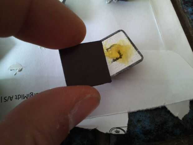 Este es el paso final. Simplemente seguir adelante y pegar los imanes en la parte posterior de las teclas. El pegamento debe quedar bastante bien en el relleno. Asegúrese de brocha de polvo suelto primero aunque. Tenga cuidado de no utilizar demasiado pegamento. No queremos este funcionamiento abajo de los lados, será más difícil conseguir de nuevo una vez que esté seco.