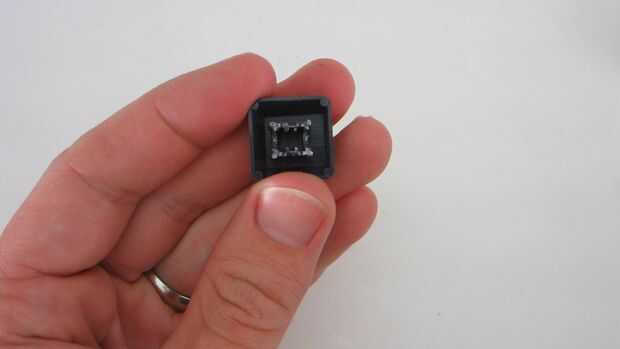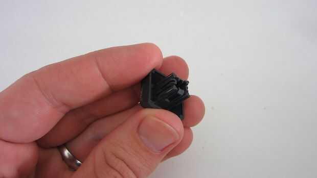 En la mayoría de los teclados, habrá lengüetas de montaje en la parte posterior de cada tecla. Estos deben eliminarse. La forma más sencilla de hacer esto es para desprenderla con un par de alicates de punta.