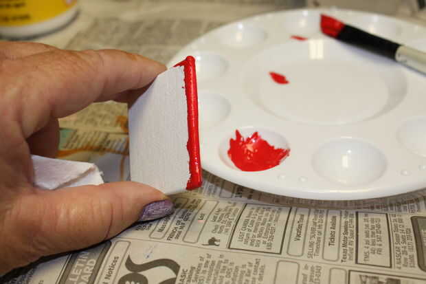 Pintar los bordes de la lona para partido/se corresponde con la foto o gráfico está conectando. Puede "envolver" esta pintura alrededor a la espalda y el frente para asegurarse de que cubrieron los bordes.
