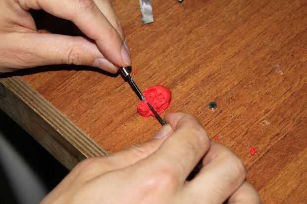 Coloque el imán en la parte posterior de la escultura. Puede cubrir con sugru para asegurarse de que no caiga.