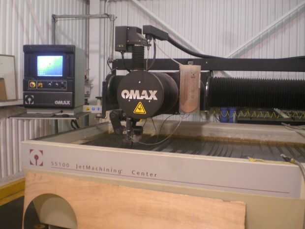 El chorro de agua OMAX en muelle 9 es capaz de cortar a través de varias pulgadas de cualquier material que puedas imaginar en un alto nivel de precisión. Pero también es capaz de generar efectos notables por grabado de diversos materiales en lugar d