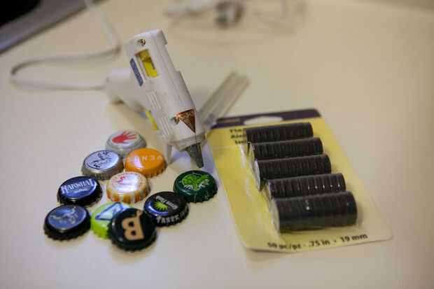 3. una colección de tapas de botella limpia y seca.