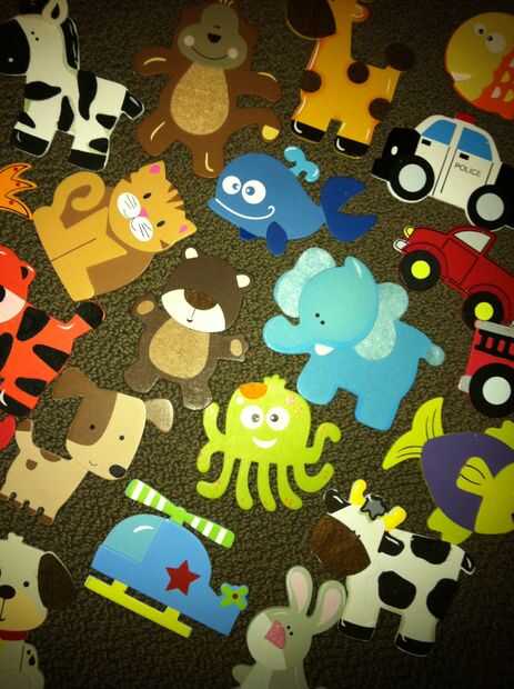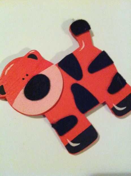Primero compré algunos animales de madera en el pasillo de la manía para los imanes.  Estos animales pintados no podrían ser más lindo! Incluso tienen narices borrosas (y en rayas caso del tigre) lo que les hace muy divertido para mi 1 año de edad jugar con. Cada uno fue sólo 66 centavos de dólar.