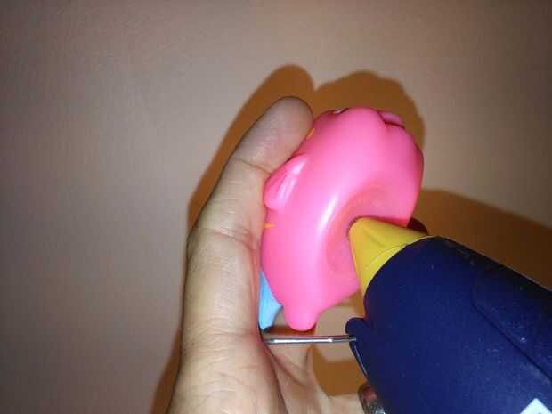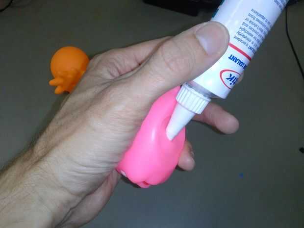 Tratar de sacudir los imanes en la base del juguete, luego chorros a la vez un montón de goma caliente a través del orificio (usted no puede ir demasiado despacio o se fijó antes de que termine) y luego pegar el juguete hacia abajo en algo metálico para que los imanes se tiran en su lugar mientras el pegamento se establece. Encontré que el pegamento no se pega realmente al plástico, pero si hay suficiente forma un tapón que bloquea a las formas internas y evita que el imán que se mueve alrededor.