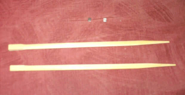 2) 2 x imanes pequeños (lo suficientemente pequeños para caber en los extremos de los palillos)