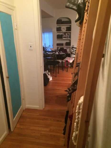 vivo en un apartamento pequeño, con un pasillo pequeño encantador hacia el cuarto de baño. Es demasiado pequeño para los muebles, y soy inquilino--los agujeros y la pintura son fuera de la cuestión. Con rebosadero del armario frente a mi "muro desnudo de la vergüenza", finalmente decidí tomar acción y crear un recorrido del faux en armario.