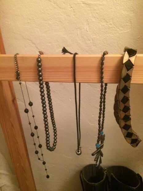Tener todos los bonitos collares y pulseras tienes y fijar a las barras transversales.