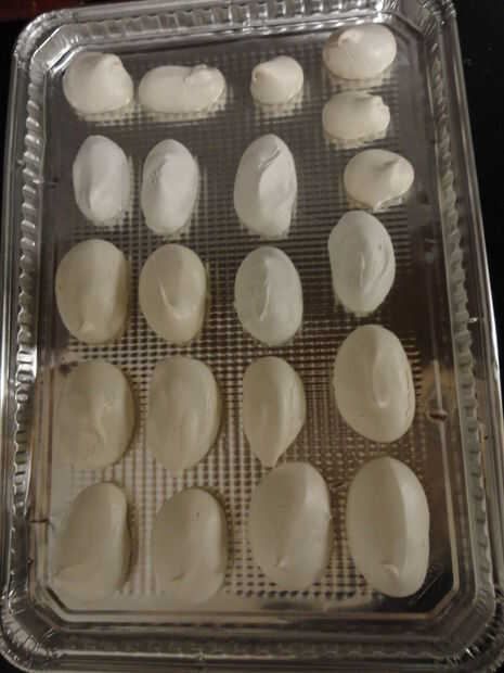 Primicia el merengue en una bolsa Ziploc (o una manga pastelera con una punta redonda, si tiene uno). Cortar la punta de una de las esquinas de la bolsa y comenzar a tubería su huevo en una bandeja forrada con papel de aluminio. Para formar un huevo, exprimir la bolsa firmemente para formar a la culata redonda del huevo y retroceder la punta lentamente para formar la parte de puntero más, del huevo. De la práctica. Si arruinara, a raspar el merengue encima de en la bolsa y vuelva a intentarlo.