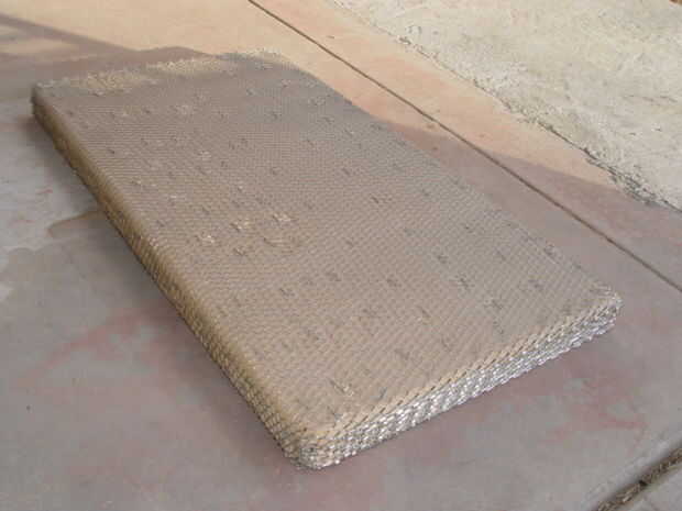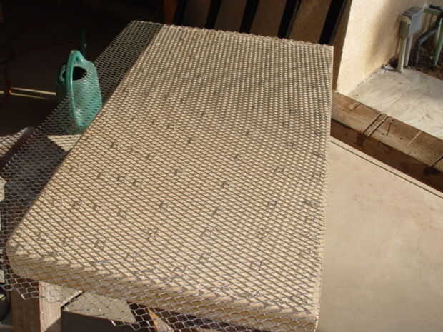 Hacer pasteles pequeños cortes en cada esquina expuesta y doblar la malla firmemente hacia abajo alrededor de los bordes curvos de la base. Recortar el material en las esquinas siempre que sea posible sobre el regazo. Desea a todos el listón que pone tan plana como sea posible contra la base de madera. Doblar la malla alrededor del borde inferior y grapa a la parte inferior. Utilice un martillo para libra abajo cualquier grapas orgullosos. El acoplamiento de alambre terminado debería verse algo como la foto final.