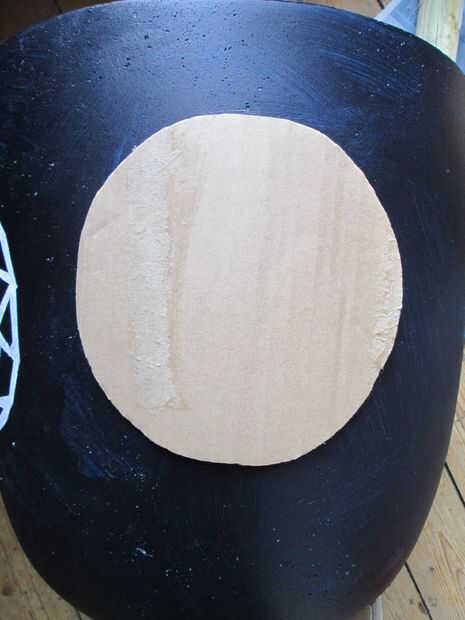 Cortar un círculo de cartón. Dibujar alrededor de ella con el lápiz en la maceta. Espacio de los círculos uniformemente alrededor de la olla. Mina dispone de cinco veces. Un número impar se ve mejor que un número par. Elijo no la llene toda la superficie de la olla para hacer falso mosaico como se mezcla demasiado con la pared. Un borde de mosaico alrededor de la olla era otra opción pero como la pared ya tiene un borde, se un poco de imaginación. Por lo tanto, la forma de círculo. Da el bote un leve japonés. Una buena combinación con el arbolito que planeaba poner en él.