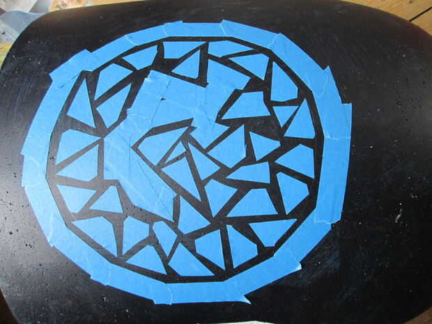 Llenar el vacío con cinta adhesiva y colocar un borde alrededor del círculo con trozos de cinta. Todos Presione firmemente hacia abajo.