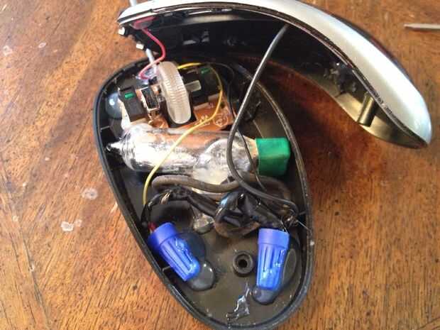 Vas a tener que jugar con cómo vas a orientar tu interruptor de mercurio basado en la restricción de espacio pero la horizontal más mejor (versos orientándolo de arriba a abajo) porque la gente tiende a mover el ratón hacia adelante y hacia atrás (izquierda), versus hacia arriba y hacia abajo, cuando agarra un ratón y muévalo (de despertar el ordenador del protector de pantalla). Usted quiere asegurarse de que el extremo de vidrio del interruptor es más bajo que el extremo del cable porque desea apagado en la posición plana natural. Usted querrá mirar cómo los puntos de contacto están orientados hacia dentro de la burbuja de cristal porque quiere apuntando hacia abajo. Ver las fotos de lo que montara mina (esta foto es del proyecto final realmente, porque trasladó el interruptor después de la primera carrera).