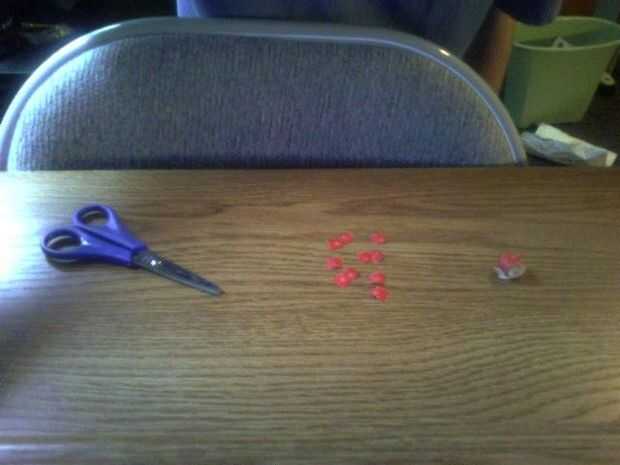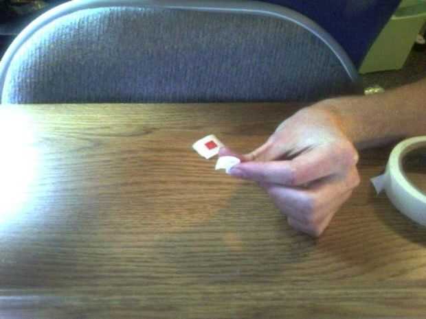 Cortar un rectángulo de 1/2" por 1" de papel y rodillo en un cilindro con un diamiter igual al ancho de la tapa de papel. Cinta en esta posición.