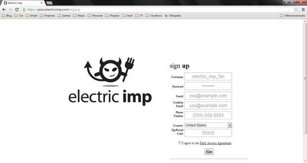 Regístrate en una cuenta en https://plan.electricimp.com/signup.