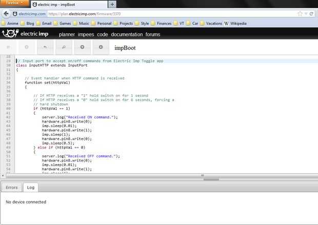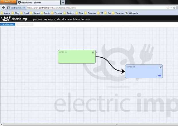7. ir a "Planificador" en el sitio de Electric Imp, donde ves un solo bloque - su Imp eléctrico