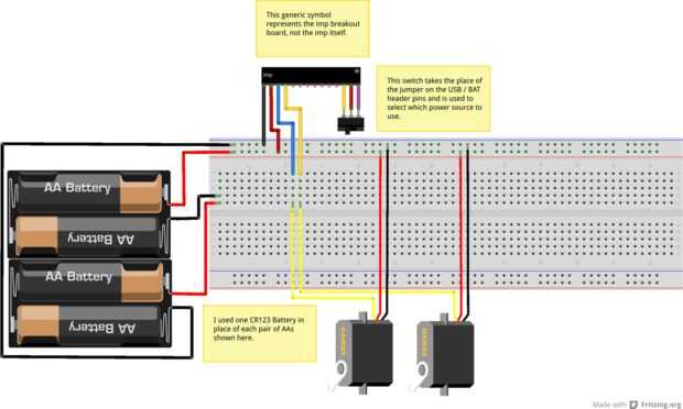 - Usar pequeños trozos de cable para conectar el medio de cada uno a la fuente de 6V de la placa breakout