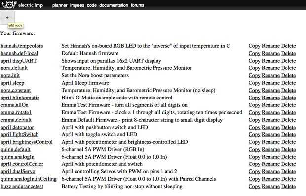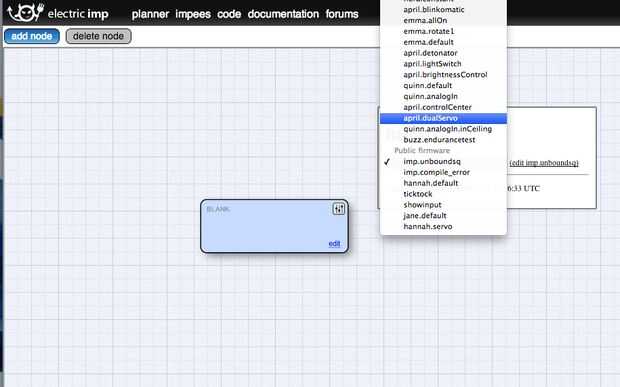 Para agarrar el código fuente, diríjase a https://github.com/tombrew/ei-fw-tom/blob/master/april-dualServo.nut. Copie el código a su portapapeles, y luego diríjase a plan.electricimp.com y Regístrate en el planificador. Ahora sigue estos pasos: