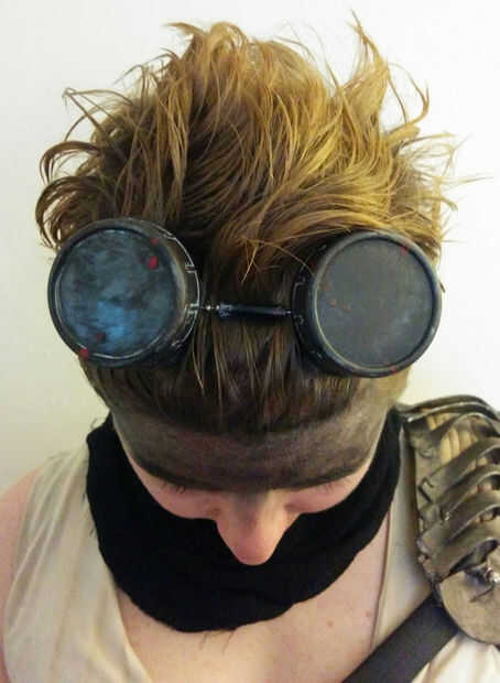 Tengo unas gafas baratas en Amazon y había envejecido con alguna pintura acrílica y un poco de esmalte para las gotas de sangre.