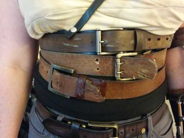 Tenía una mayor correa tipo corsé que cosí los cinturones marrones en. Fue más fácil y con tanto conectado y todo lo guarda en el lugar donde debe estar. También, es cómo funciona en la película, por lo tanto, ganar.