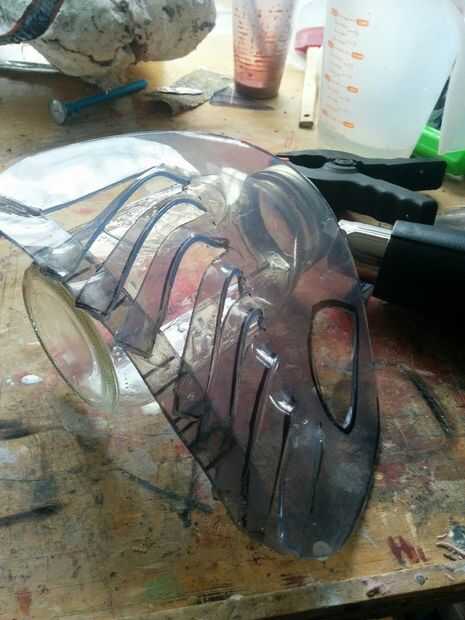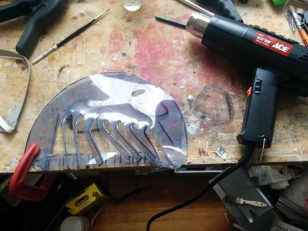 Con todas las precauciones de seguridad adecuado es necesarias para un plástico + calor funcionamiento, utilicé la configuración inferior de la pistola de calor lentamente doblar cada una de las láminas hacia arriba y hacia abajo para conseguir el efecto de onda en su armadura.