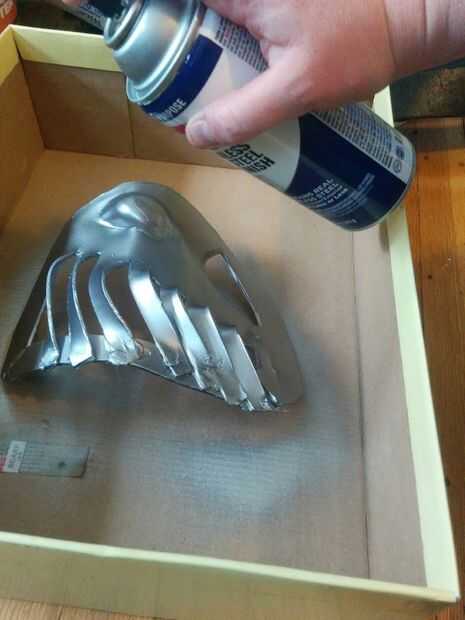 Una vez que era genial, lo dio una sola vez sobre lijado y luego rocía la pieza con una capa de base plata. desde allí solía un xacto para añadir algunos arañazos y asperezas.
