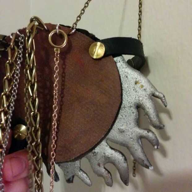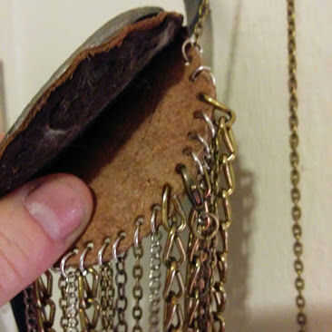 La primera pieza de cuero era buena lookin' marrón oscuro que agregué costura a. El segundo era mucho más pesado pedazo de cuero de útiles que podría apoyar las cadenas.