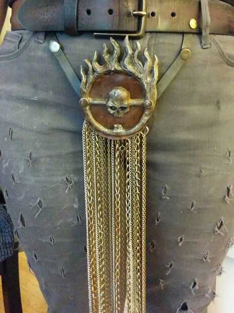 No tengo en fotos de proceso de esta parte, ya que en su mayoría estaba volando tratando de ver lo que funcionó. Al final, el respaldo tenía dos capas de cuero, correas para sujetar a los tornillos del cinturón y libro para mantenerlo todo junto.