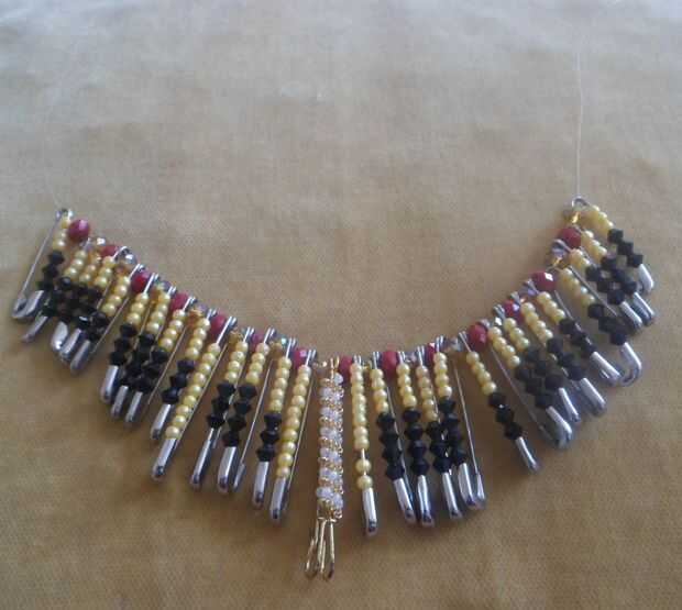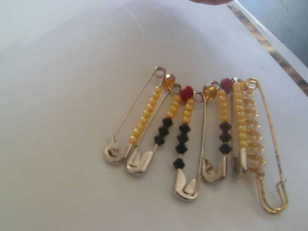 -Colocar perno de diseño en el centro y arregló imperdibles de creciente a decreciente orden de tamaño en ambos lados del perno diseño.