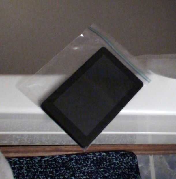 Me gusta incluso mejor que con un viejo libro, ya que el Kindle está protegido y no necesita jugar con pasar las páginas a través de una bolsa. Incluso la pantalla de un Kindle Fire funciona a través de la bolsa!