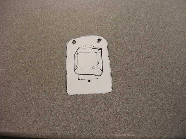 Comenzar por medir y marcar donde se coloca la rejilla del altavoz. Lo hice haciendo una plantilla de papel para que sea más fácil trazar el contorno de la parrilla del altavoz y marca donde el agujero se cortarán y los orificios para perforar con punzón de cero. También quería hacer el agujero real para el altavoz tan pequeño como sea posible, permitiendo todavía el sonido resuene dentro del contenedor (también Asegúrese de permitir suficiente espacio para pasar altavoces a través del agujero del interior). He notado que sonidos de bajo son mucho mejor cuando el contenedor está sellado. Después de marcar ambos lados, es hora de comenzar los agujeros del corte y perforación tornillo orificios para fijar la parrilla.