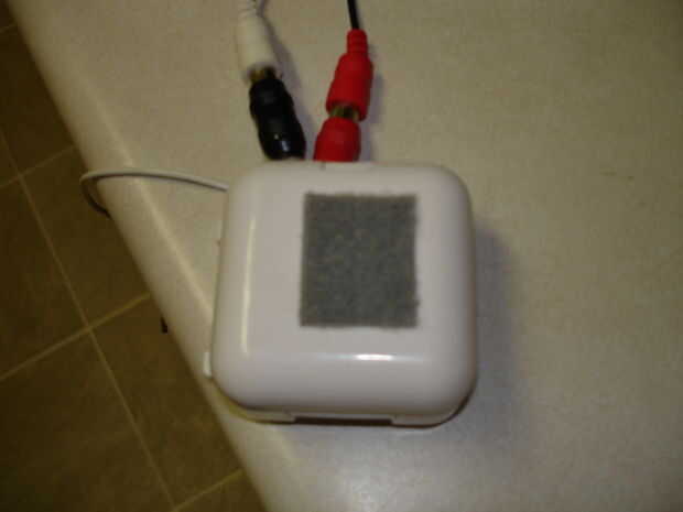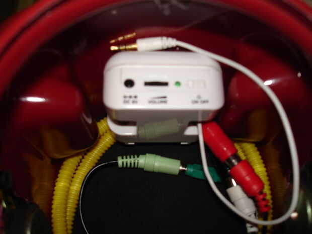 Mientras que el altavoz se elaborar bien con amplificación, sentí tendría más sentido (el ruido blanco del chorro de agua será a menudo "ahogar" la música) a un impulso. Hay muchas soluciones a este problema (véase instructables muchos sobre el tema), pero mina fue conducido por costo y por algunos otros criterios que se van a la "Luz" más adelante. Elegí la reingeniería de un amplificador de algún botín (cosas todos) que recogí en el camino. Una característica interesante que este diseño tiene es 6v puerto que funciona realmente de voltaje del USB. Escurr también cuatro AAA recargables que pueden cargarse vía externa de 6 v en o en Arizona el sol.