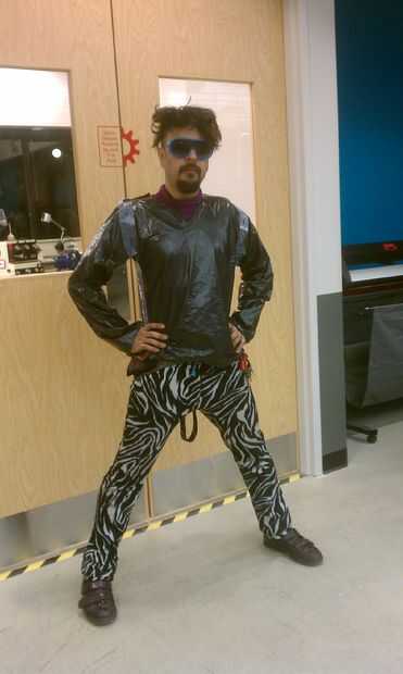 esto hizo de la banda (conseguirlo?) anoche en TechShop < www.techshop.ws> cuando mi rompevientos cayeron de mi rack > :( Yo te te lo pierdas! era celeste y tenía bordado scrolly reflexivo. Así que fui bajo el fregadero y tiene una bolsa de basura y cogí algunas cinta de correo de outta los suministros de oficina y 10 minutos más tarde tuve este elegante impermeable juntos. Casi parece una chaqueta de cuero. voy a agregar eventualmente algún velcro a la espalda y un seno en reflexivo