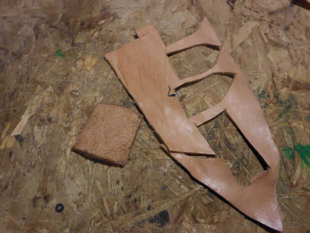 materialescuero gruesocordón de cueroherramientasponche de cuerotijeraspara hacer un par de guantes de cuero para mi assassins creed inspirado traje de que corto el cuero en forma de medio hexágono pero mucho más largo que se adapta a mi brazo envuel