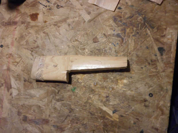 • Un pedazo de desecho de la madera dura. (Yo usé parte de un mango de hacha rota, hickory buena).