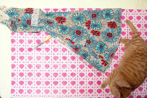 Marcar el contorno del vestido en el mantel, o directamente cortar alrededor del vestido si tienes confianza en tus habilidades de corte.